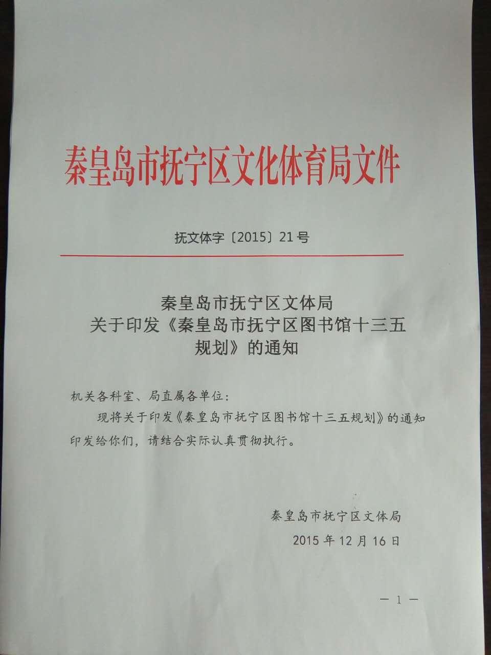 抚宁区图书馆十三五规划文件