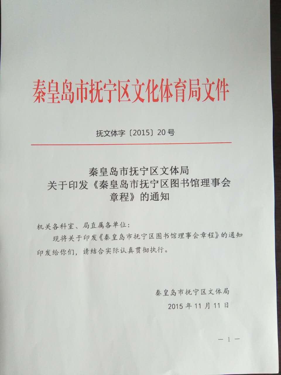 上一篇:抚宁区图书馆十三五规划文件下一篇:抚宁区图书馆章程批准文件
